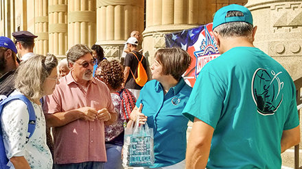 Kirribilli Markets shoppers stop, learn and pledge at Drug-Free World Exhibit.
